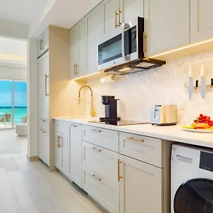 The rooms at this Grace Bay hotel include air conditioning. Some of them comprise an adjoining terrace and a dining area, furnished with a writing table. They have a neutral interior. Enjoy views of the ocean, while staying at the luxury property.